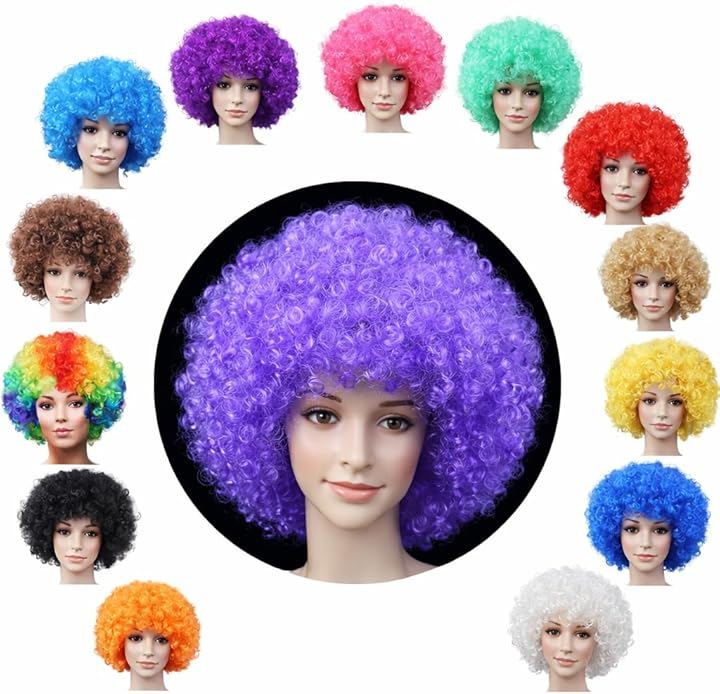 「スポーツ観戦に。チームカラーで応援。」チームカラーのウィッグで目立っちゃおう。鮮やかな発色とボリュームたっぷりのアフロヘアーはテレビクルーも大注目。TVカメラにクローズアップされちゃうかも⁉