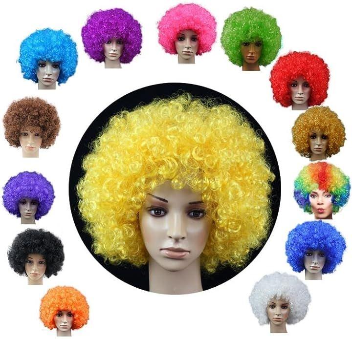 「スポーツ観戦に。チームカラーで応援。」チームカラーのウィッグで目立っちゃおう。鮮やかな発色とボリュームたっぷりのアフロヘアーはテレビクルーも大注目。TVカメラにクローズアップされちゃうかも⁉
