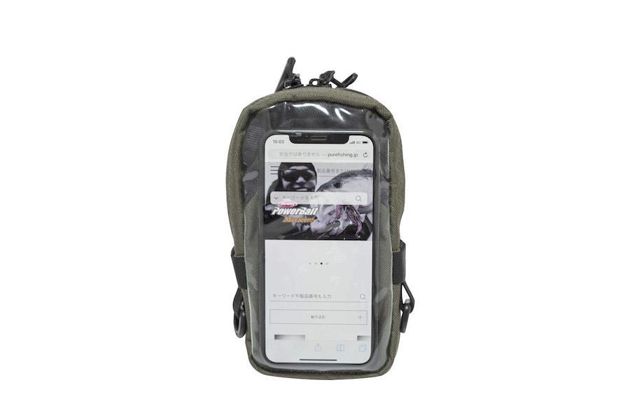 スマートフォンなどの小物収納に便利なユーティリティポーチ。ゲームベストやバッグ、ベルトなどに装着して、貴重品や小物類を機能的に携帯できる。浸水を防ぐ止水ファスナー使用(簡易防滴で完全防水ではございません)。 正面にはスマートフォン(5.8インチサイズまで)を入れたまま操作が可能なスリット式クリアポケット(機種によってはタッチスクリーンが反応しない場合がございます)。内部には、貴重品の脱落を防止するキーホルダーストラップ付き。背面のストラップを使用して別売のAbuヒップバッグ3やゲームベストなどに取り付け可能。
