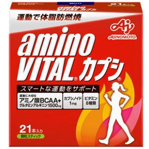 「アミノバイタル カプシ」は食品ですので、スポーツだけでなく、毎日の生活においても、安心して続けていただけます。アミノ酸は素早く吸収されるので、ダイエットのための運動を快適にすることができ、カプシエイト類で運動でより効率的な燃焼に役立ちます。使用している材料には、溶けにくい成分(BCAAなど)も含まれていますので、溶かさずにお召し上がりください。