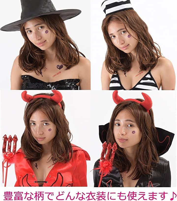 ・ハロウィンにかかせないキャラや文字がたっぷりのタトゥーシールがセットに。 ハサミと水があればどこでも簡単に貼ることができます・ シールサイズ:縦152mmx横127mm