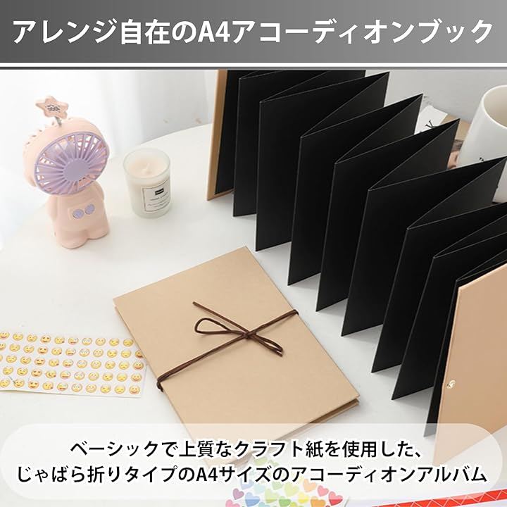 「アレンジ自在のアコーディオンブック」 ベーシックで上質なクラフト紙を使用した、じゃばら折りタイプのアコーディオンアルバム。