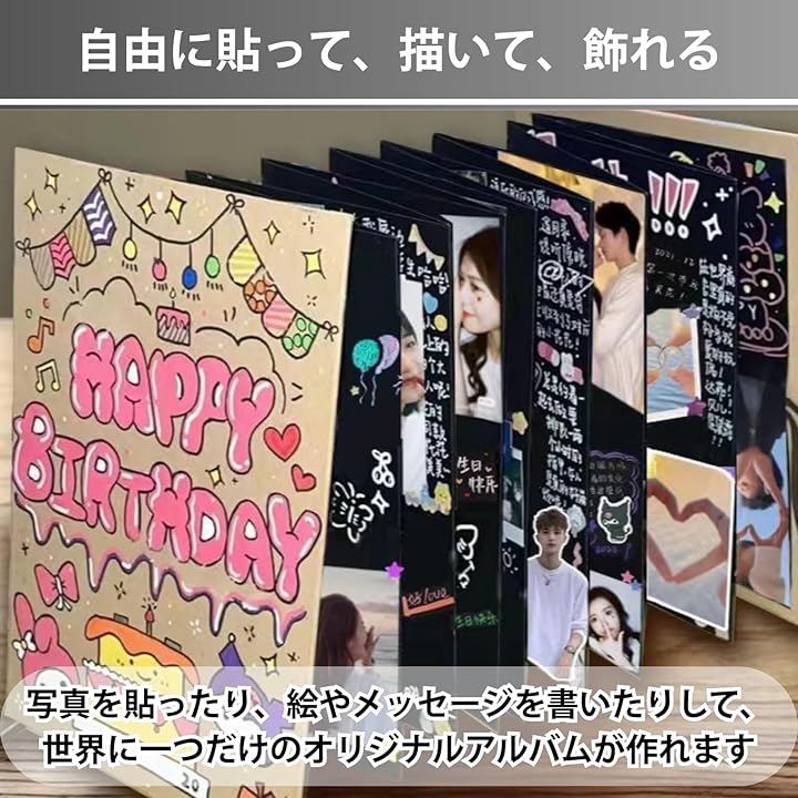 写真を貼ったり、絵やメッセージを書いたりして、世界に一つだけのオリジナルアルバムが作れます。
