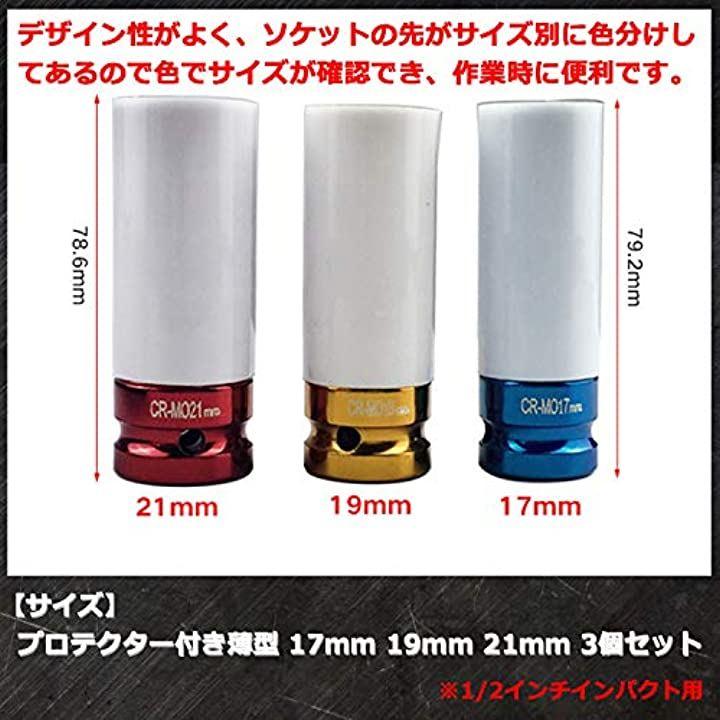 「サイズ」プロテクター付き薄型 17mm 19mm 21mm 3個セット *1/2インチインパクト用