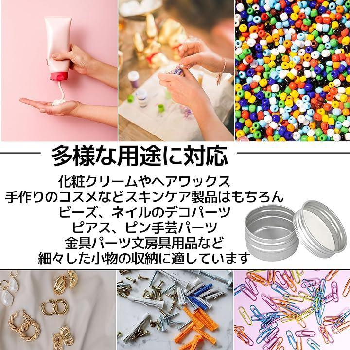 「多様な用途に対応」 East Leafのアルミケースは、化粧クリームやヘアワックス、スキンケア製品はもちろんビーズ、ネイルのデコパーツ、ピアス、ピン、手芸パーツ、金具パーツ、文房具用品など、細々した小物の収納に適しています。