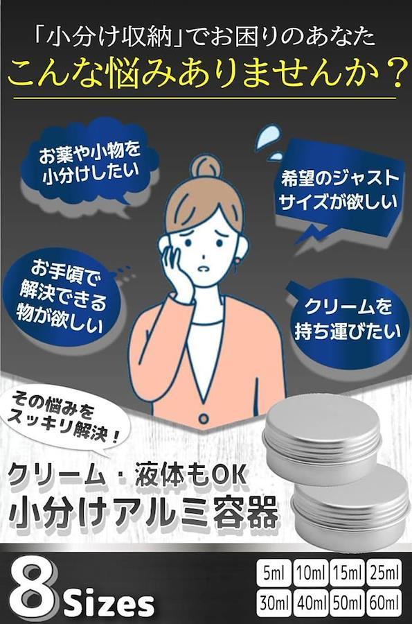 「小分け収納」でお困りのあなた こんな悩みありませんか? お薬や小物を小分けしたい…希望のジャストサイズが欲しい… お手頃で解決できる物が欲しい…クリームを持ち運びたい… その悩みをスッキリ解決。 クリーム・液体もOK。小分けアルミ容器。