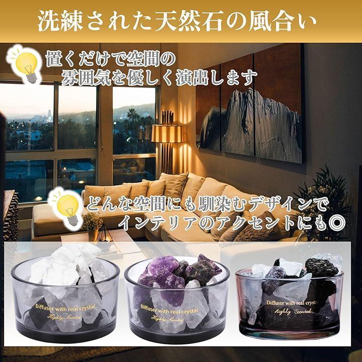 天然石はそれぞれ異なる質感とカラーが楽しめ、専用容器との一体感あるデザインが、お部屋の雰囲気に自然と溶け込みます。