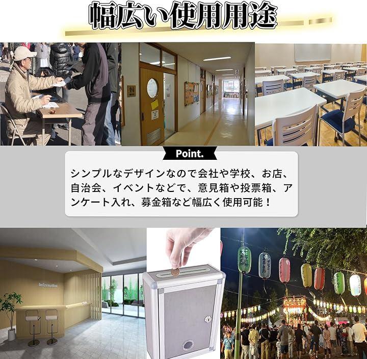「多目的アンケートボックス」シンプルなデザインなので会社や学校、お店、自治会、イベントなどで、意見箱や投票箱、アンケート入れ、募金箱など幅広く使用可能となっております。
