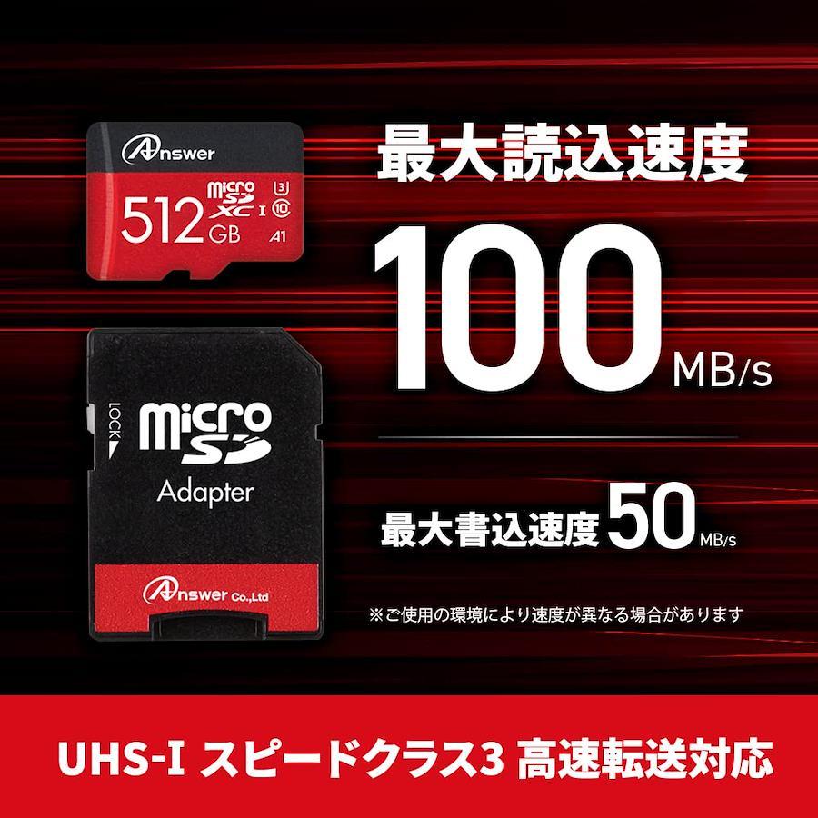 アンサー microSDXCカード512GB 各種Nintendo Switch対応 UHS-I Class10(最大読み込み速度100MB/s)