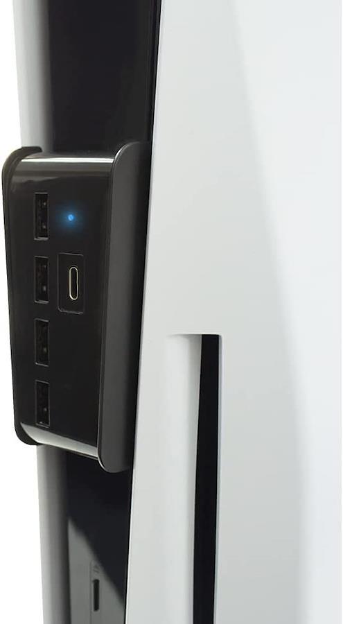 給電はバスパワータイプ!PS5本体に挿し込むだけで、USBポートを5つへ増設できます。 (※USB TYPE-Aポート 4つ、TYPE-Cポート 1つです。) 充電・通信接続が可能。給電はバスパワータイプで別途電源を用意する必要はありません。