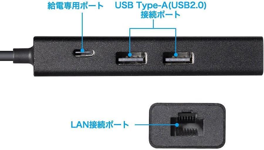 有線LANアダプタにUSB2ポートとPD給電ポートを増設!