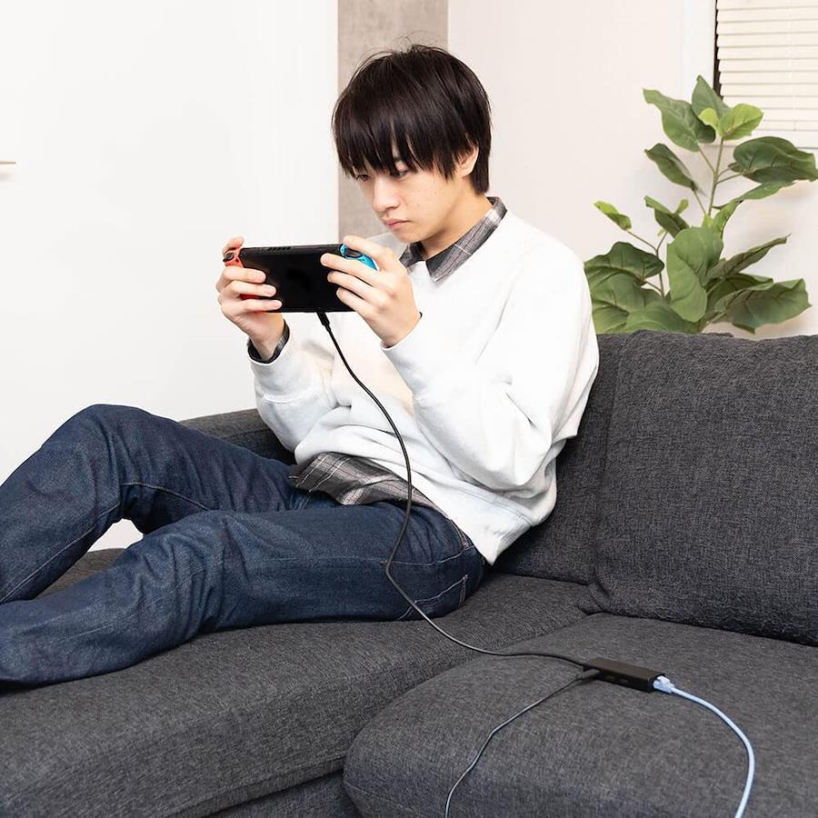 給電専用ポートに接続することで充電切れの心配なくゲームプレイが可能です。
