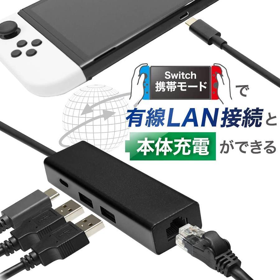 SWITCH本体と有線LANを接続することで安定した通信が可能です。携帯モードでもオンライン対戦をより快適に楽しめます。