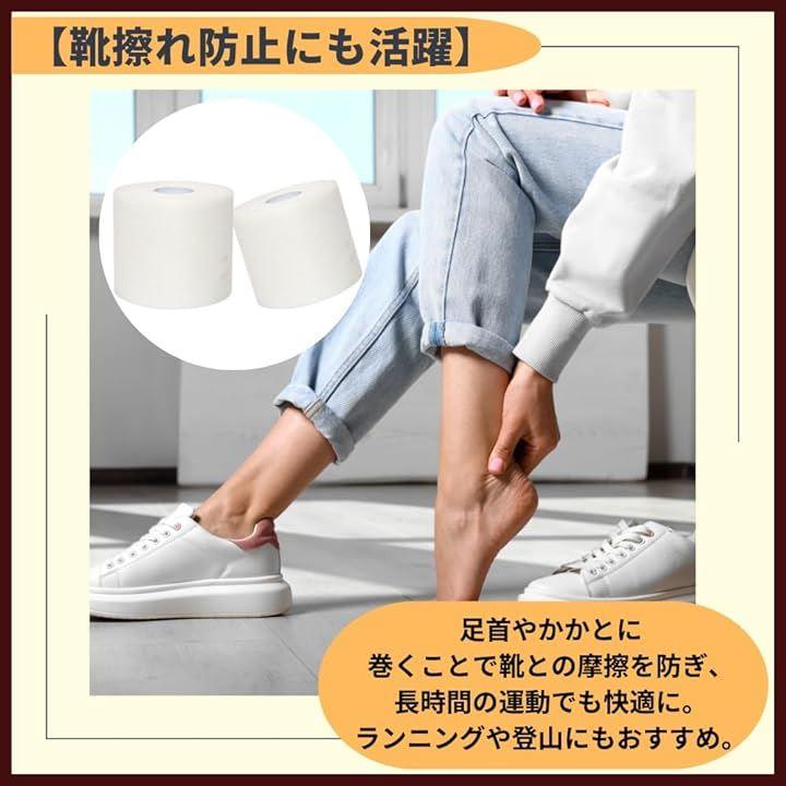 「靴擦れ防止にも活躍」足首やかかとに巻くことで靴との摩擦を防ぎ、長時間の運動でも快適に。