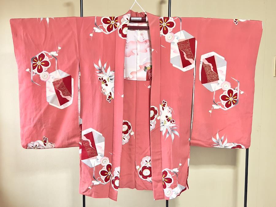 これはアンティークの羽織です。こちらは手描きで柄が描かれています。デニムやスカートと合わせてドレスアップも楽しみやすく人気な商品です。