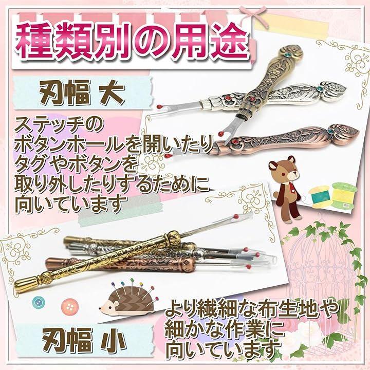「用途」ダブルエッジの刃で、糸やステッチを切り裂くのに適しています。