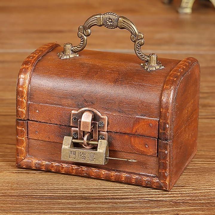 宝箱を思わせるデザインが特徴で、木製ならではの温もりとレトロ風の雰囲気が魅力です。