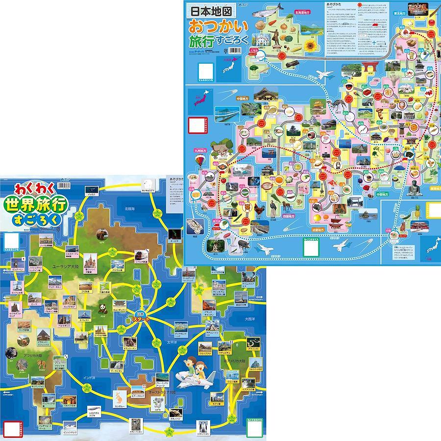 遊んで学べる知育すごろくセットです。【日本地図おつかい旅行すごろく】と【わくわく世界旅行すごろく】の人気セット。自然と楽しく地理を覚える! 好きになる! ※この商品はアーテック社が企画販売するオリジナルJAN品番商品です。他の出品者様の類似品出品はご遠慮お願いしております。 (.co.jpより) 遊んで学べる知育すごろくセット 日本地図おつかい旅行すごろく:日本全国をまわって名物を手に入れよう わくわく世界旅行すごろく:世界中を旅して名所や動物を発見しよう 商品サイズ:すごろくシート 620×620 mm ※この商品はアーテック社が企画販売するオリジナルJAN品番商品です。他の出品者様の類似品出品はご遠慮お願いしております。 中国製