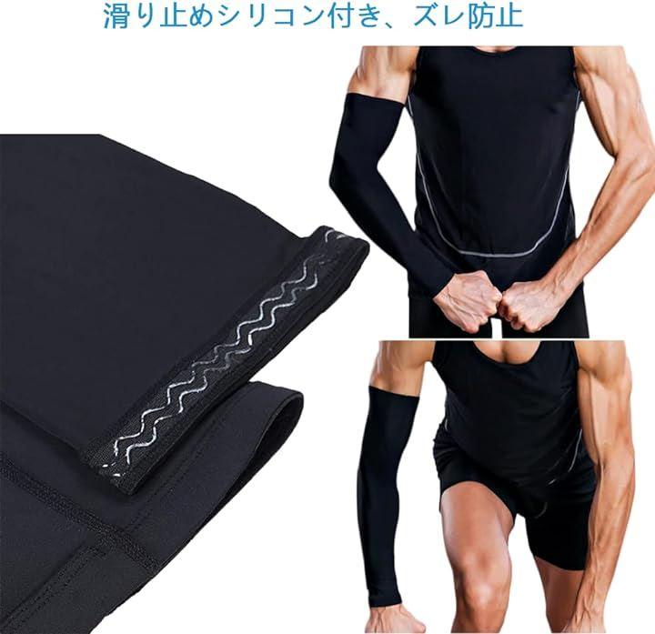 アームカバー上腕口には滑り止めシリコンが加工されており、腕にしっかりと固定し、ズレを有効的に防止できます、バスケットボールのような激しいスポーツにも安心。