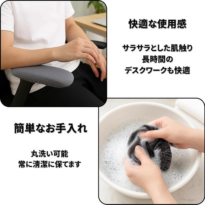 「快適な使用感」このアームレストカバーは、サラサラとした肌触りで、長時間のデスクワークでも快適に過ごせます。