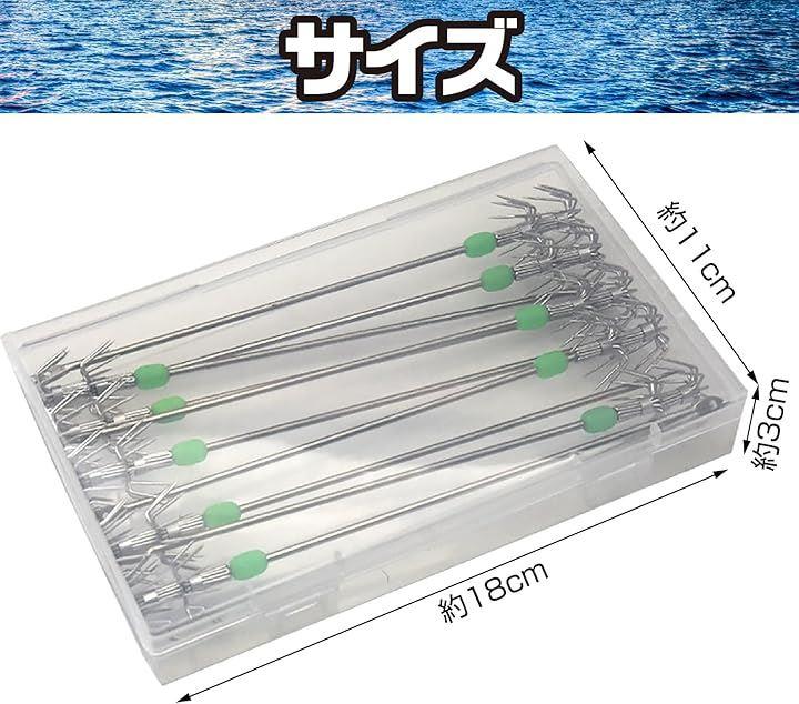 「 ステンレス製でサビに強い。長時間使用可能、便利なケース付きで持ち運びもラクラク」釣り道具に必要な耐久性を兼ね備えたステンレス製のフックは、長期間の使用にも耐え、海水や塩分に強い特性を持っています。