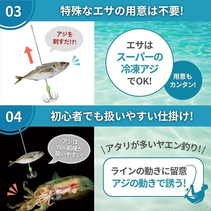 「初心者でも簡単」 スーパーで手に入る冷凍アジを使えば、手軽にアオリイカなどが狙えます。
