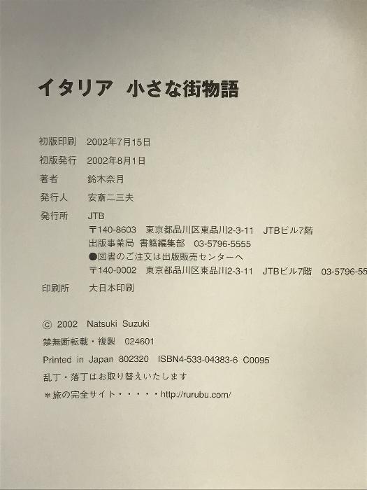 イタリア 小さな街物語 単行本 JTBパブリッシング 鈴木奈月