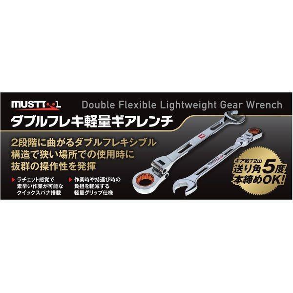 ●2段階に曲がるダブルフレキシブル構造で、狭い場所や届きにくい場所の作業に効果を発揮するギアレンチ。