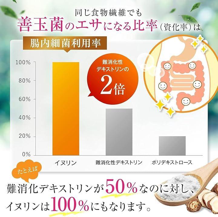 さらにイヌリンは善玉菌として知られているビフィズス菌を増やし、腸内フローラを整えることでお通じを改善しおなかの調子を整えることが報告されています。