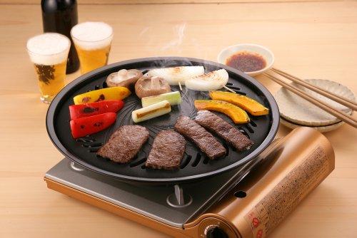 ●本体サイズ/338(幅)×272(奥行)×84(高さ)mm●重量/約1.2kg●カラー/ブロンズゴールド●材質/本体:鋼版(静電塗装)、トッププレート:フッ素コート鋼版、ごとく:耐熱アルミダイカスト、バーナー:耐熱アルミダイカスト、器具せんつまみ:耐熱ABS樹脂●ガス消費量/約236g/h※1●連続燃焼時間/約70分※2●点火方式/圧電点火方式●安全装置/圧力感知安全装置他●容器着脱方式/マグネット方式●使用ガス/イワタニカセットガス●※1気温20~25℃のとき、30分間のガス消費量を1時間に換算したもの●※2気温20~25℃のとき、強火連続燃焼にてカセットガスを使い切るまでの実測値