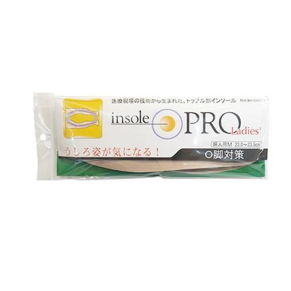 製品の特徴●insole PRO Ladies' インソールプロ レディース O脚対策●土踏まず部からかかと部にかけて、足の外側を持ち上げる「ヒールウェッジパッド」を配置しているので、膝関節の角度を調整し、正常な状態へサポートします。●歩行時の衝撃を吸収し効率の良い歩行を行うため、基本骨格を支える「アーチパッド」を2ヶ所に配置し、足裏のトラブルを予防します。●ウレタンフォームを使用したことにより、ソフトな足あたりで歩行時に足にかかる衝撃を吸収します。●お召しになる靴のつま先の形状に合わせて、はさみでカットしていただくことが可能です。●抗菌防臭加工を施しているため、菌の繁殖を防ぎ嫌なにおいを防止します。●カラー:ベージュ