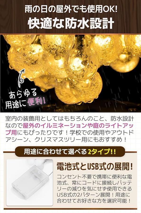 「快適な防水設計」室内の装飾用としてはもちろんのこと、防水設計なので屋外のイルミネーションや庭のライトアップ用にもぴったりです。学校での使用やアウトドアシーン、クリスマスツリー用にもおすすめ。