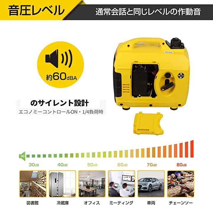 高品質な製品良質な電気を,インバーター方式を採用 、波形ひずみ率を2.5%以内に抑え家庭用電源と同レベルの安定電気供給が可能。