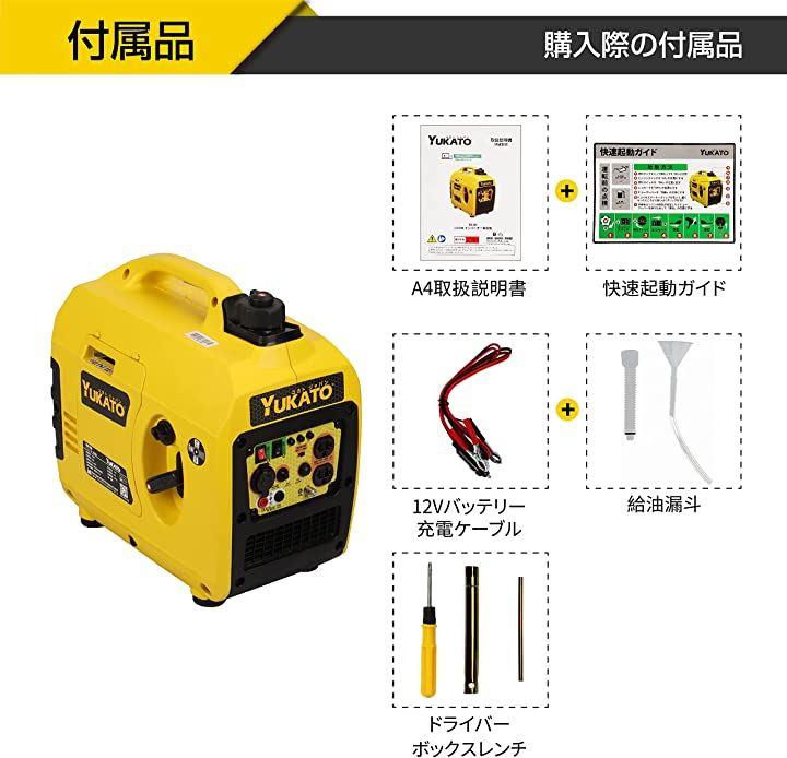 セット内容: 発電機本体x1、12Vバッテリー充電用ケーブルx1、ドライバーx1、ハンドル棒x1、プラグレンチx1、漏斗x1、ツール収納バックx1、日本語取扱説明書x1
