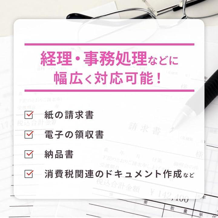 例えば、紙での請求書はもちろん、納品書、さらには消費税関連のドキュメントにまで対応可能です。