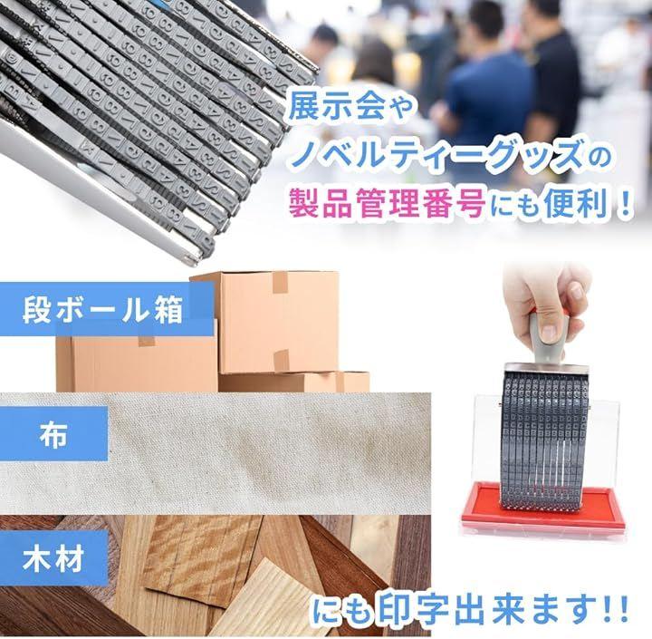 「幅広く活用できる」このゴム印は数字(0-9)はもちろん、記号なども揃えたフレキシブルローラーを採用しており、文字列の変更も手軽に行えます。