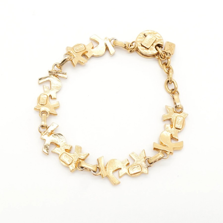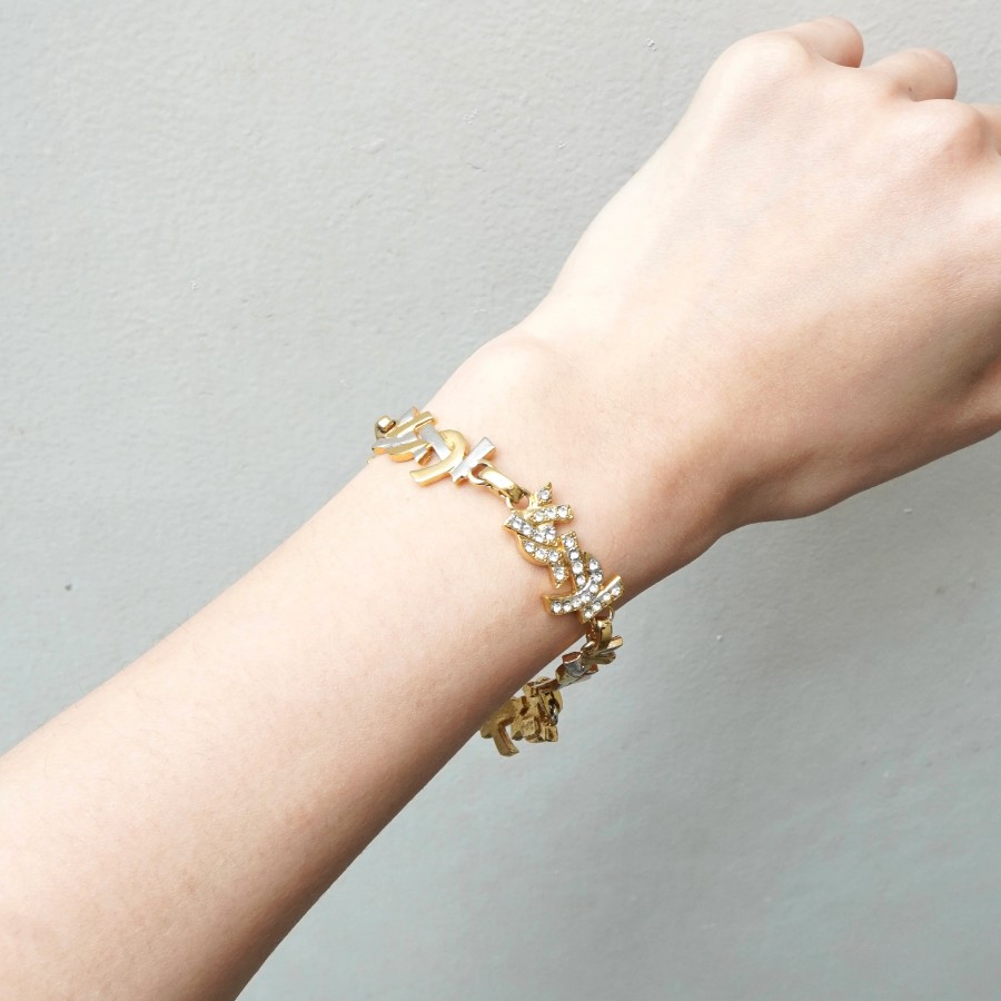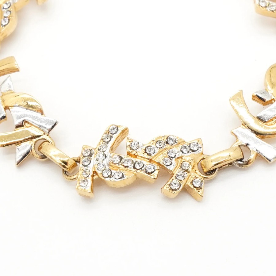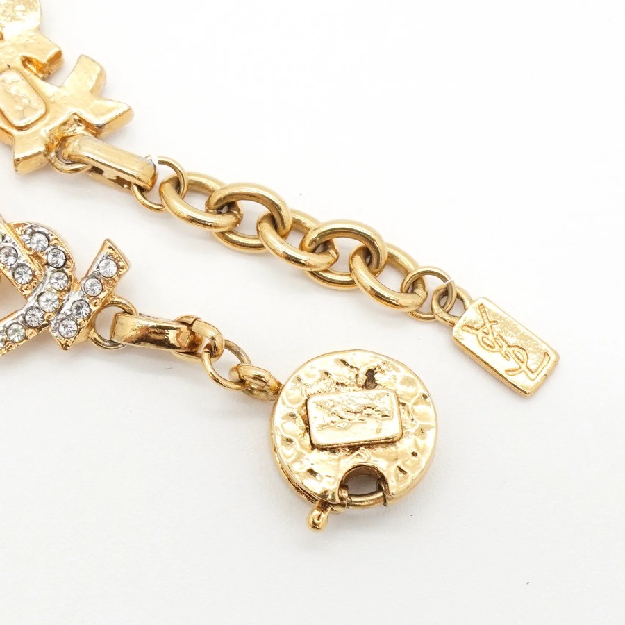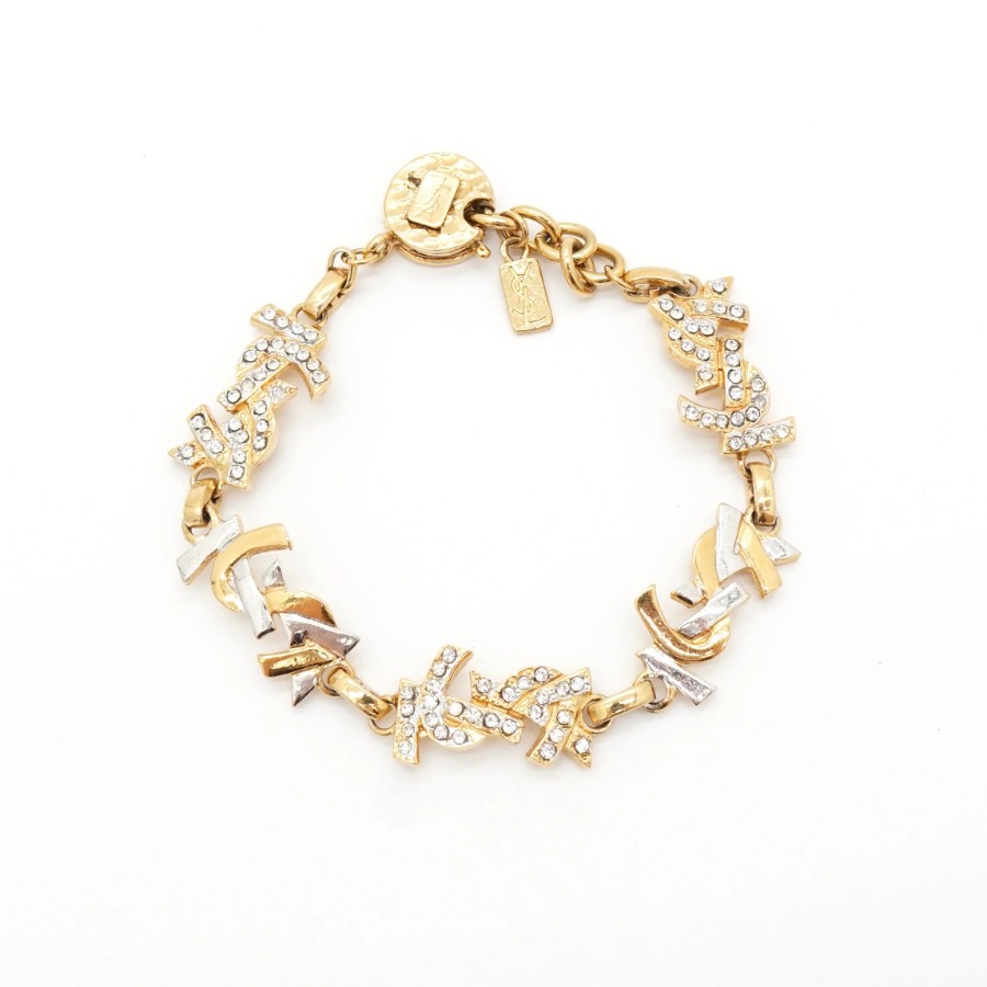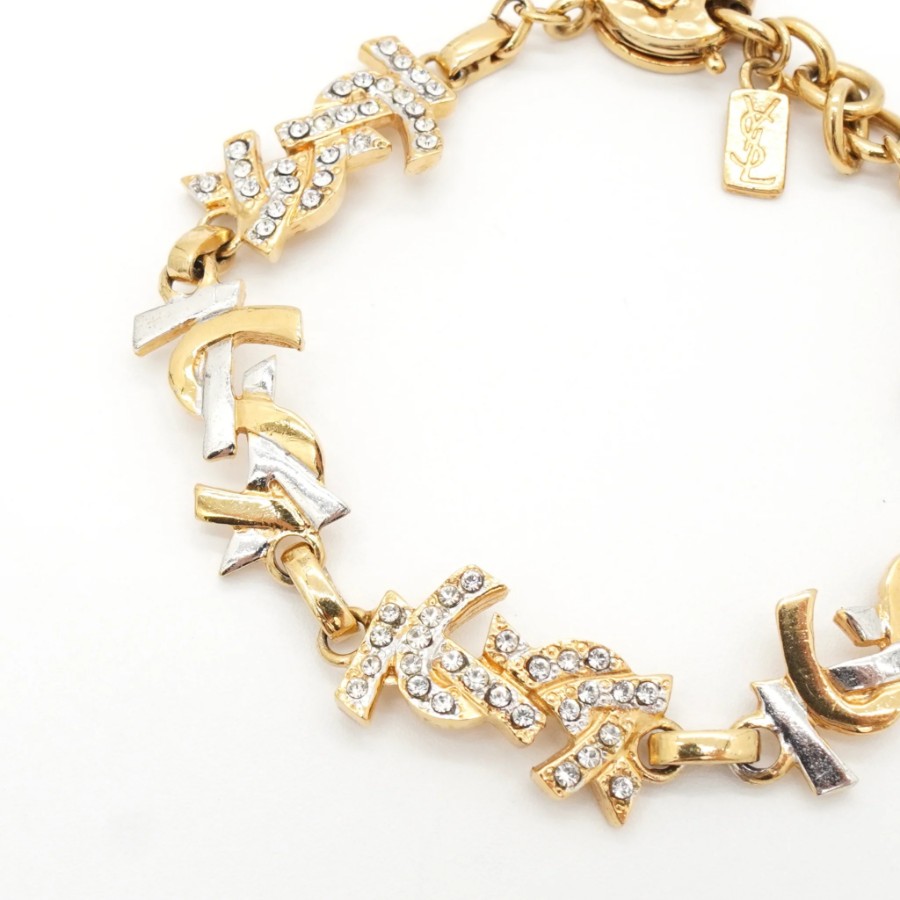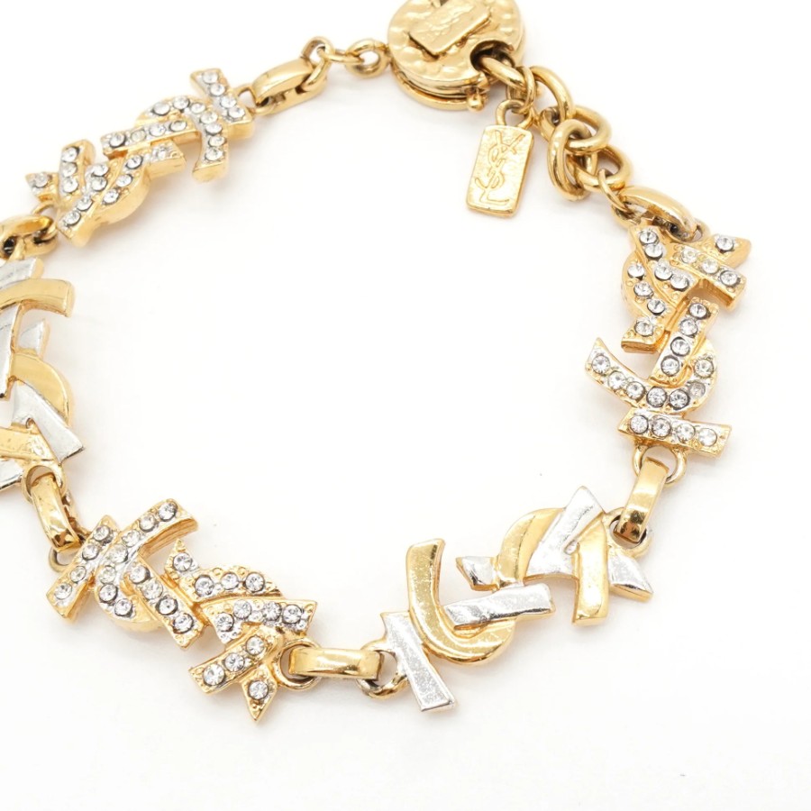 イヴサンローラン YSLロゴ ラインストーン ブレスレット GP ゴールド シルバー