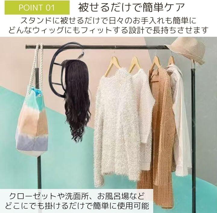 「ウィッグを清潔に守る通気性設計」クローゼットや洗面所、お風呂場など、どこにでも掛けるだけで簡単に使用可能。