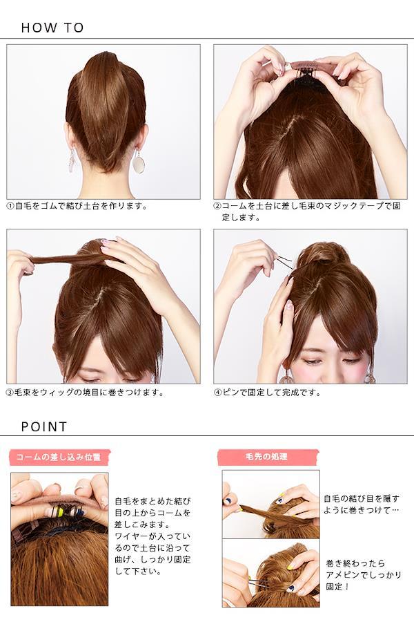 マジックテープのついた毛束を付け根に巻きつけるだけでできる、ポニーテールタイプのウィッグ。