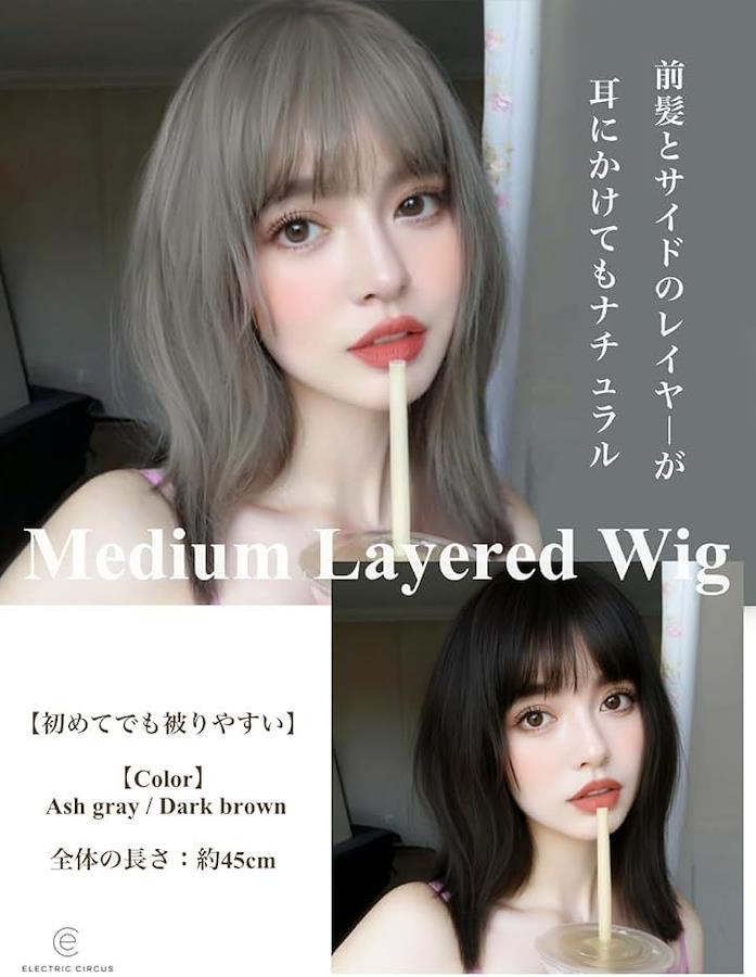 「初めてでも被りやすい」前髪とサイドのレイヤーが耳にかけてもナチュラル・ウィッグ内側に伸縮性ヘアネット付き(アジャスターでサイズ調節可能)・つむじは髪が根元から毛流があり自然な仕上がり・デイリーにもコスプレにも合わせやすく、アレンジ自由