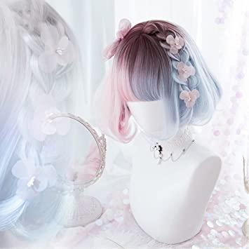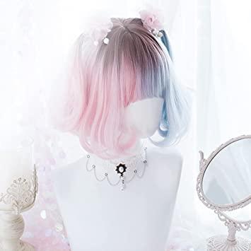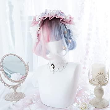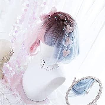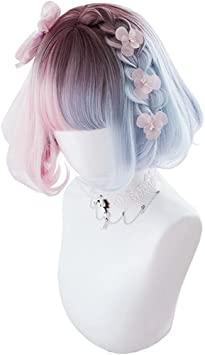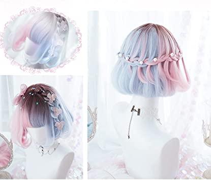 通常1-5営業日で発送:ウィッグ ロリータ 原宿風 GAL系 コスプウィッグ ゴスロリ 耐熱 左右色違い (ピンク 水色) メッシュ ボブ 森ガール ゆめかわいい お姫 小顔 パーティー 仮装 日常 かつら wig