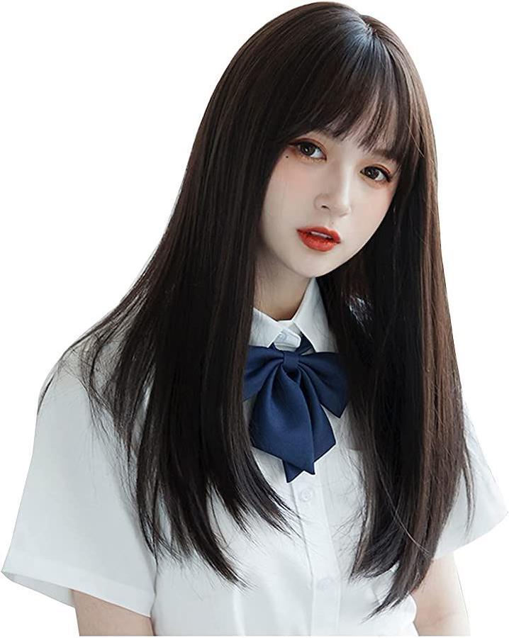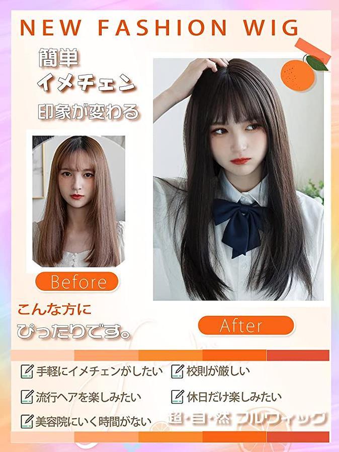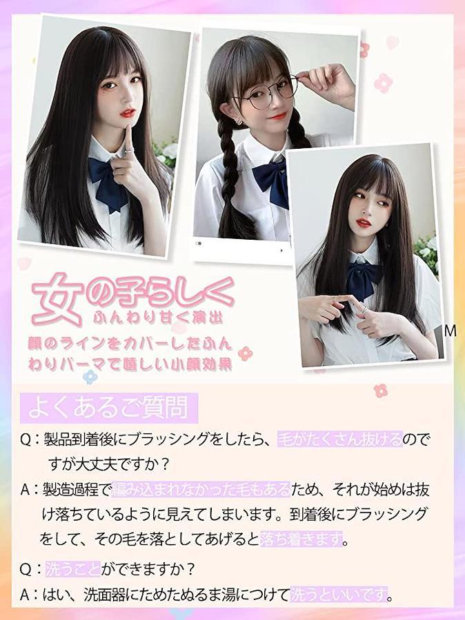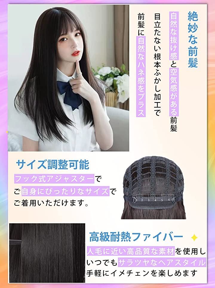 ロングストレート黒髪ウィッグ、いつもと違う”抜け感ロングヘア”ロングストレート黒髪ウィッグ、いつもと違う”抜け感ロングヘア”絶妙なナチュラルカラー黒髪ウィッグ自然に見えるつむじ、分け目も自然です。