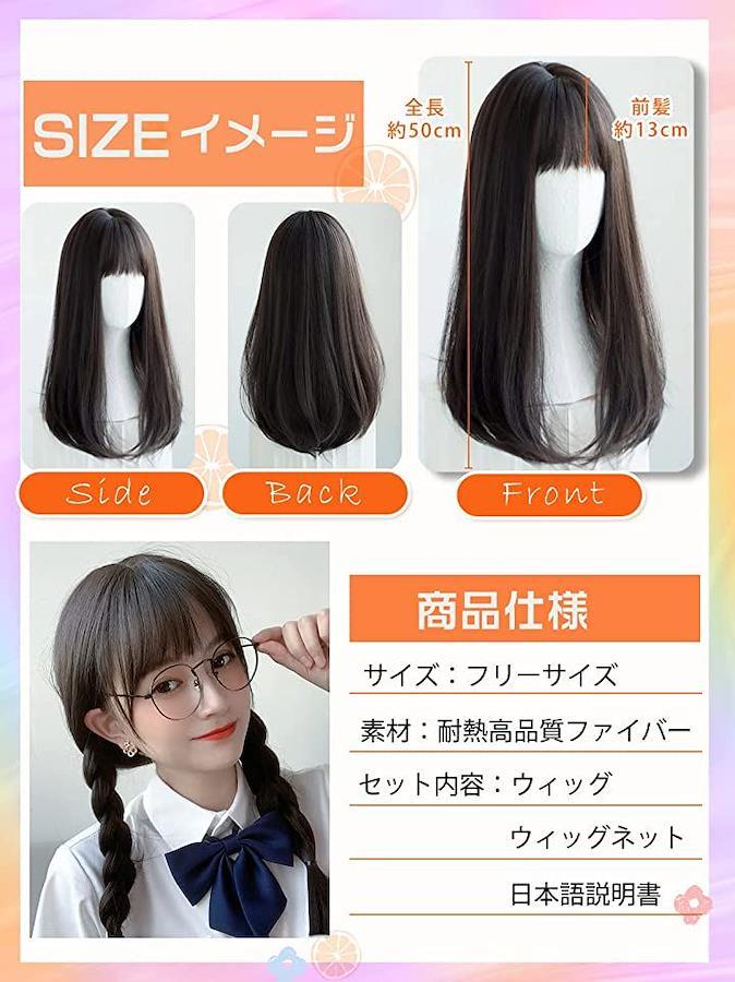 コテ・アイロン・ドライヤーは160°まで使用可能です伸縮性があるウィッグキャップ高品質耐熱ファぃバー、髪質はサラサラで、絡みにくい日本語使用説明書、ウィッグネット付きなので、ウィッグ初心者の方でもすぐ装置できるBoxパッケージ包装されて、ギフトにもおすすめ
