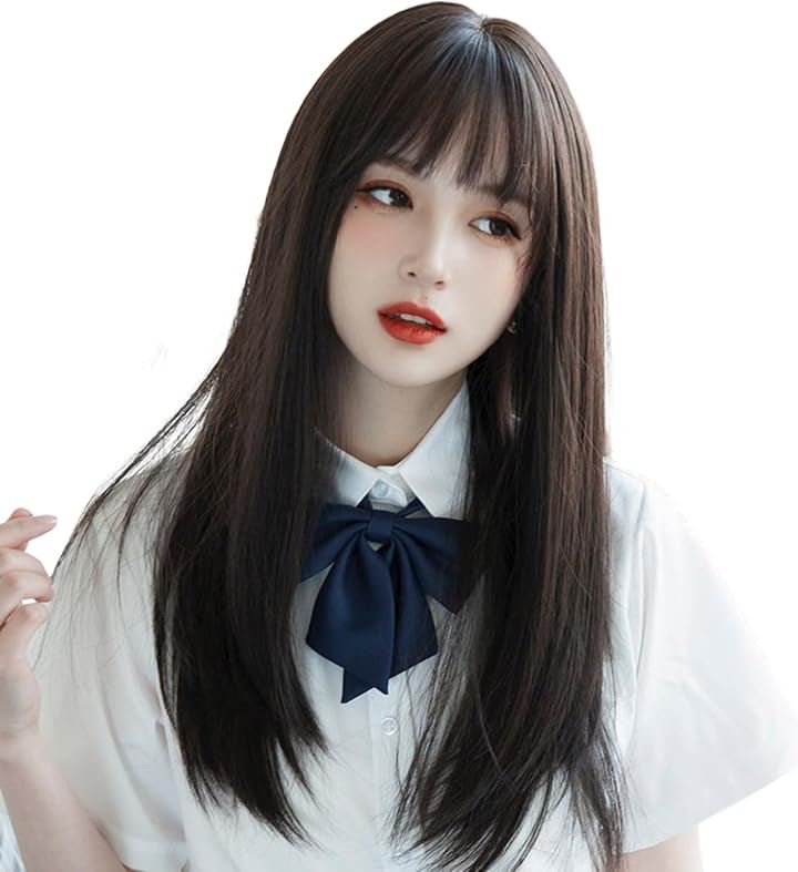 「自然に馴染む黒髪ロングウィッグ」黒髪にほんのり茶色を含んだダークブラウンブラックカラーを採用したロングウィッグ。