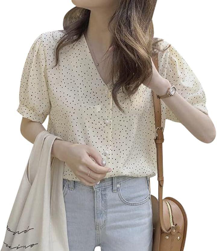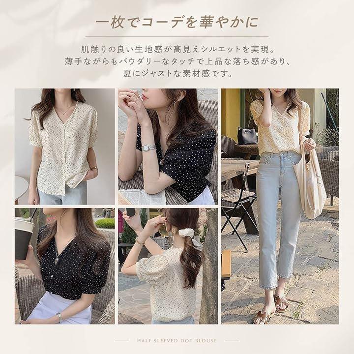 一枚でコーデを華やかに仕上げるドットブラウス。