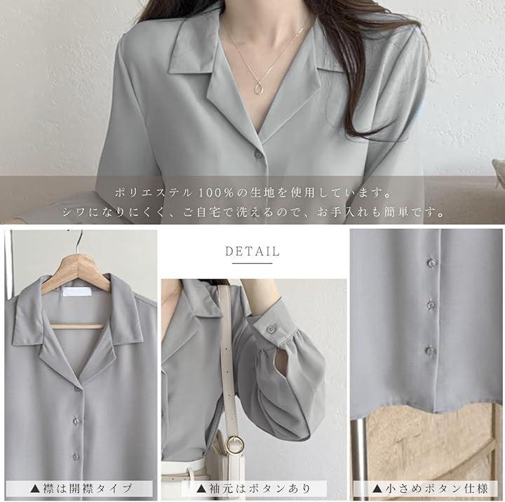 ウェアビー ボリュームスリーブ 開襟 ブラウス 長袖 シャツ かわいい オシャレ オフィス 無地 シンプル Vネック 春夏 レディース パフスリーブ ロングシャツ エレガント トップス ビジネス 通勤 柔らかい ノーアイロン シフォン とろみ