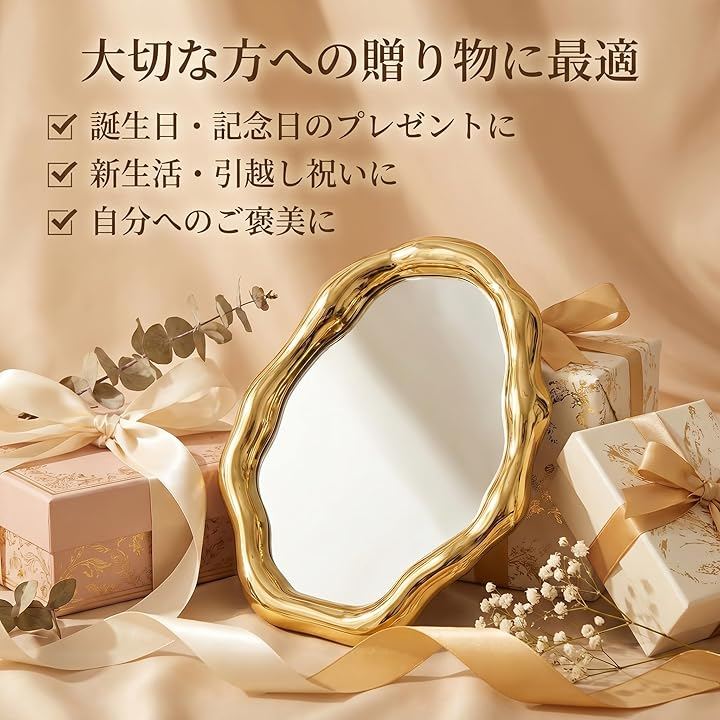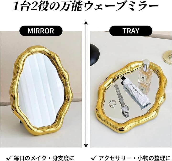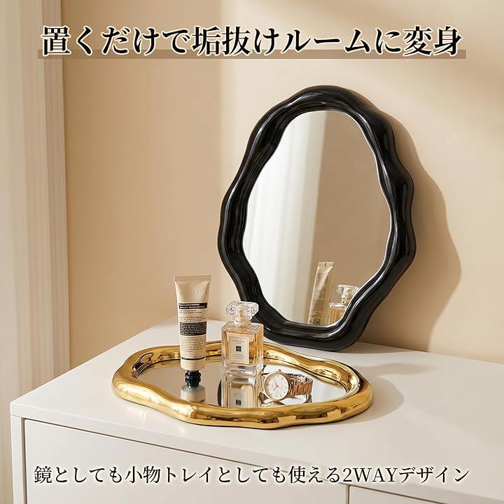 ウェーブミラー 卓上 おしゃれ 化粧鏡 曲線 波形 デザイン メイク スタンド かわいい モダン インテリア 小物 トレイ 一人暮らし ギフト プレゼント