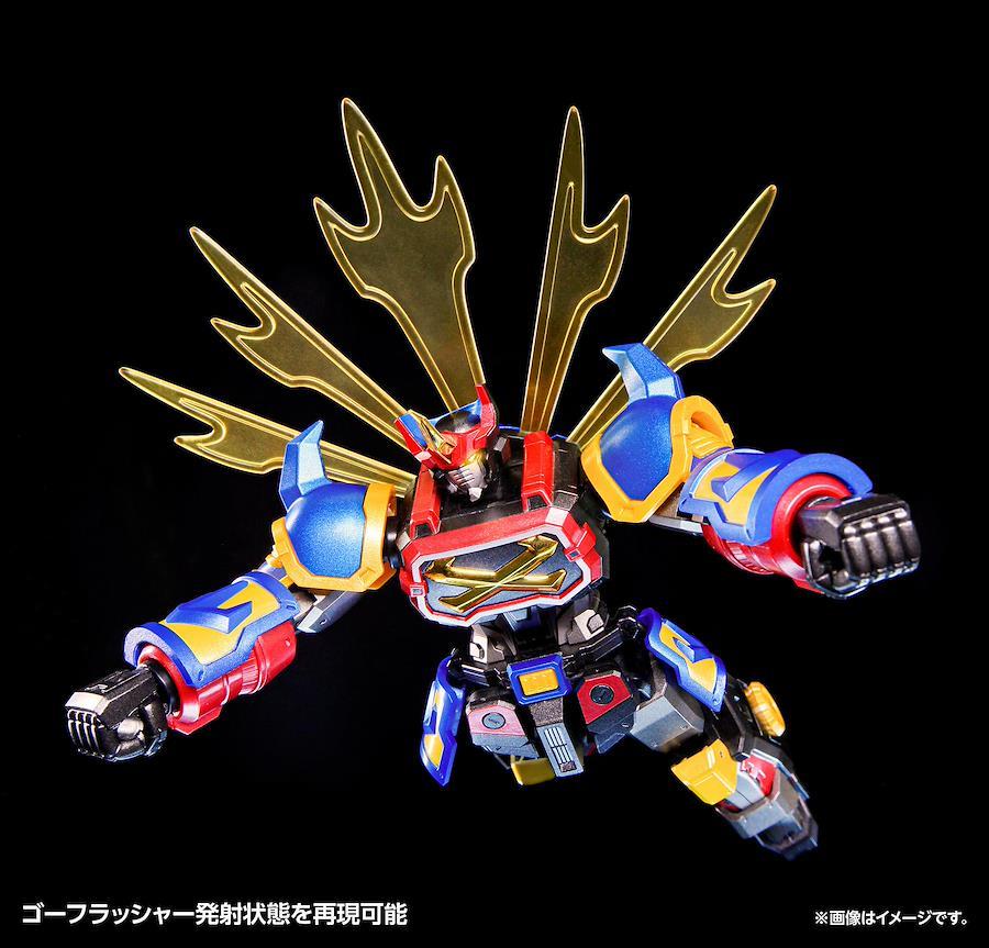 戦国魔神ゴーショーグンの完成品モデルが登場!特徴的な外観に現代的なディテールを追加しつつ、各部関節は大胆な設計で広い可動範囲を実現。武装はゴーサーベル、ゴースティック、スペースバズーカ、ゴーフラッシャーの4種が付属。ゴーショーグン本体の可動性能とあわせて、さまざまなアクションポーズを楽しむことができます。一部パーツにダイキャスト合金を使用しており、手に取った時の重量感も魅力となっております。付属の小型ロボ「トライスリー」はキングアロー、ジャックナイト、クイーンローズの3機に分離、合体が可能。合体後は各部関節が可動し、さまざまなポーズ付けをすることができます。分離後の3機のメカはゴーショーグン各部に収納することが可能。背部のゴーフラッシャーは取り外しが可能で、通常時と必殺技発動時の両方を再現。さらに初回特典として、「ゴーフラッシャー・スペシャル」状態を再現できるクリアーブルー成型のパーツが付属します。【戦国魔神ゴーショーグン 初回限定版】塗装済み完成品アクションフィギュア。製品素材:ABS、PVC、ナイロン、POM、ダイキャスト合金等。NONスケール (全高約180mm/頭頂高)。各部関節が可動。小型ロボ「トライスリー」は分離、合体が可能。 (全高約60mm)。付属品:ゴーサーベル、ゴースティック、スペースバズーカ、トライスリー、ゴーフラッシャーパーツ、ハンドパーツ各種 (ゴーショーグン用 握り手、開き手/トライスリー用 握り手、開き手)。初回特典:ゴーフラッシャー・スペシャル用パーツ (クリアーブルー成型)。製造元: 茶虎文化創意 (上海)有限公司。輸入販売元:株式会社ウェーブ。※写真のモデルは開発中のものです。実際の製品とは細部の仕様が異なる場合があります。本製品は進械研 (GO! MECHA LABO)が企画・製造した製品を株式会社ウェーブが輸入販売するものです。(C) GoShogun Partners 戦国魔神ゴーショーグンの完成品モデルが登場!特徴的な外観に現代的なディテールを追加しつつ、各部関節は大胆な設計で広い可動範囲を実現。初回特典として、「ゴーフラッシャー・スペシャル」状態を再現できるクリアーブルー成型のパーツが付属します。 NONスケール (全高約180mm/頭頂高) (C)GoShogun Partners