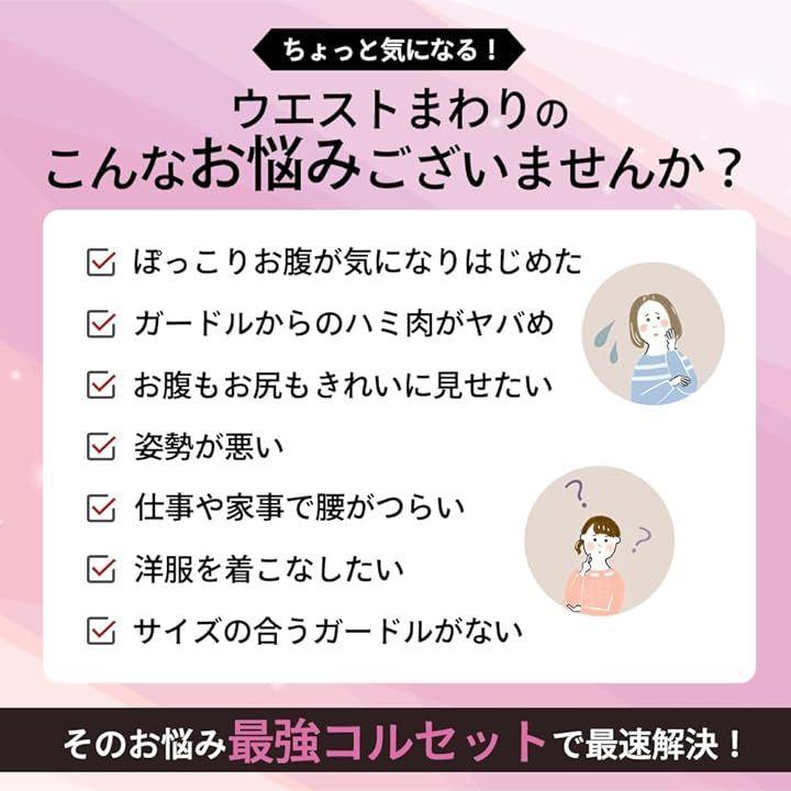 ウエストまわりの悩みがありませんか? ・ぼっこりお腹が気になりはじめた ・ガードルからのはハミ肉がやばい ・お腹もお尻もきれいに見せたい ・姿勢が悪い ・仕事や家事で腰がつらい ・洋服を着こなしたい ・サイズの合うガードルがない
