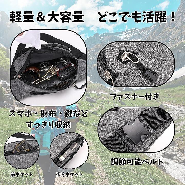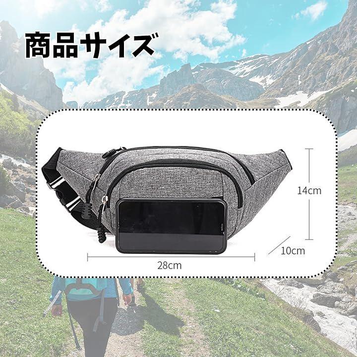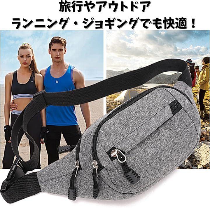 「多機能ポケット」このウエストポーチは4つのポケットを備えており、スマートフォン、鍵、財布などの必需品を整理整頓して持ち運ぶことができます。